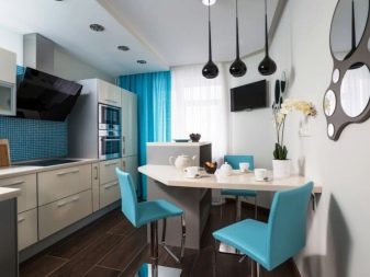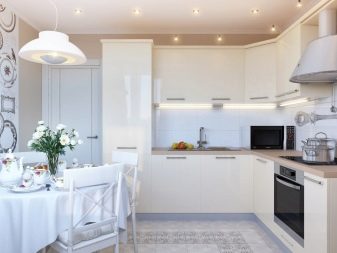 The combination of wallpaper, as well as the ceiling and flooring is quite important, although the white color is “friendly” with almost all the color palettes. To create a beautiful interior, it is recommended to pre-design the future room with a kitchen on paper or, using a special program. Sometimes the help of a specialist can come in handy.