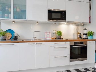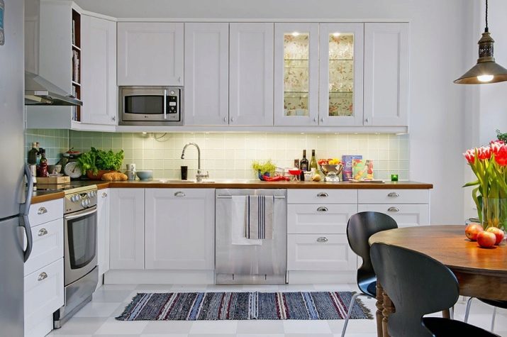 - A small minus can be considered that there are a lot of white kitchens today because of the fashion for the so-called Scandinavian style of interior, in which in most cases there is a white kitchen set.