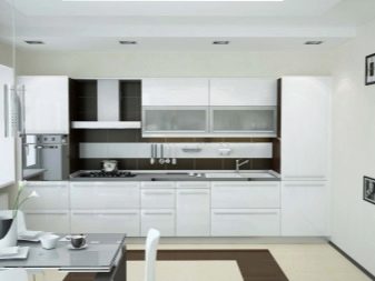 - For modern interiors It is important to use bright kitchens (with matte or glossy facades) with integrated handles and fully integrated appliances. This is especially true for high-tech and minimalist styles. Most often, these types of headsets are made of acrylic, plastic or varnish.