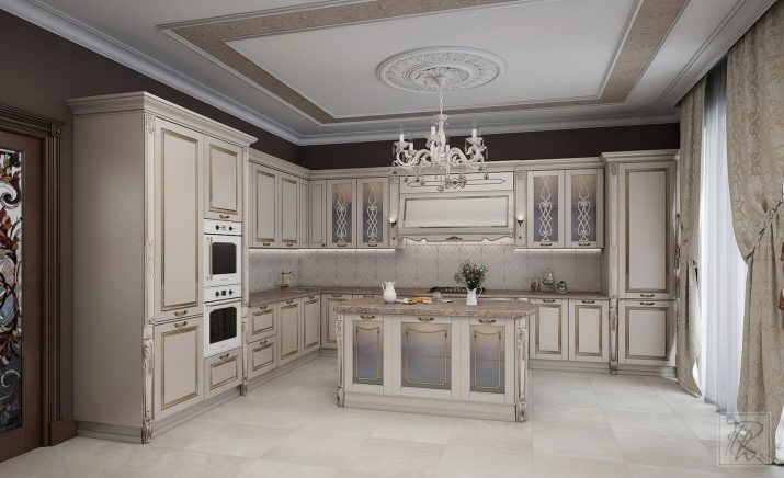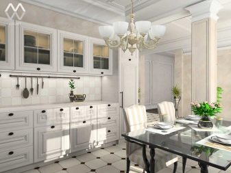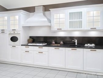 For classic interiors, it is important to choose white-brown or white-milk kitchen sets with facades complemented by glass.