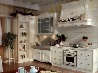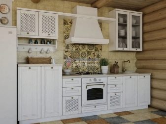 - Country and Provence. Bright kitchen sets in such styles are often decorated with original ornaments and even patterns; in them, as in classic versions, original wood carvings can be present.