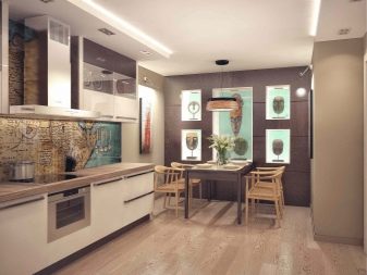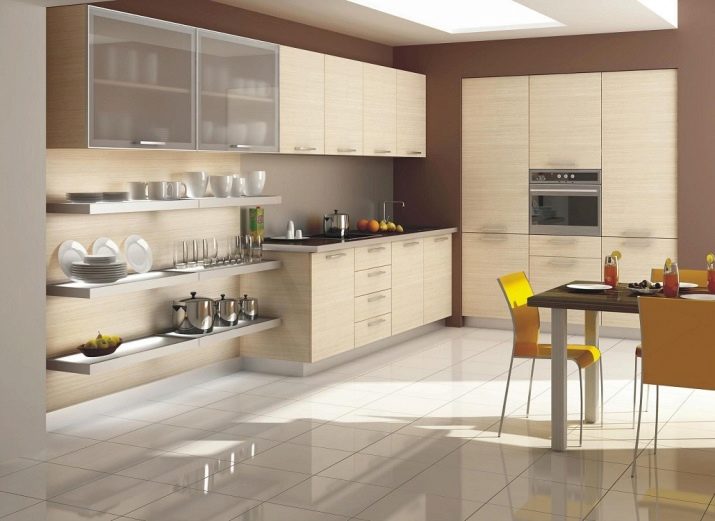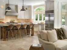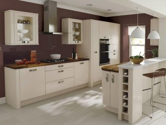 Effective accents can be: hood, ceiling lights, as well as decorative elements (vases with flowers, vibrant greenery, clocks, panels, photos in the frame). Suitable as a space divider and floor with small inserts of a different color. If the kitchen has ledges or partitions, you can use them: contrasting ledges of the walls will give the interior a special style. As for the best companion color combination in a room with a predominance of beige, it is white.