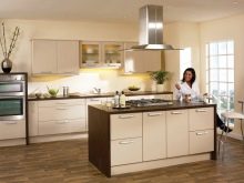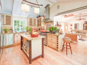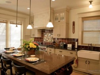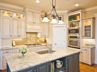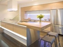 - A kitchen with an island decorated in the best tradition of zoning space.