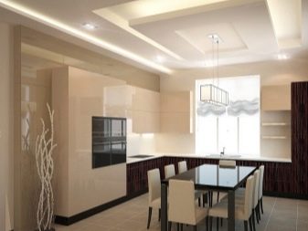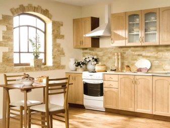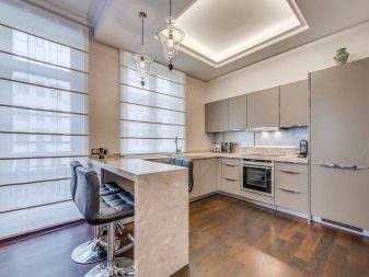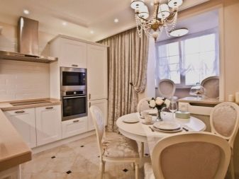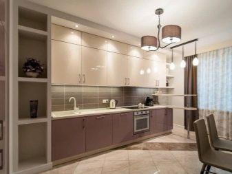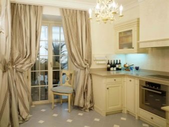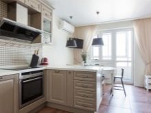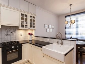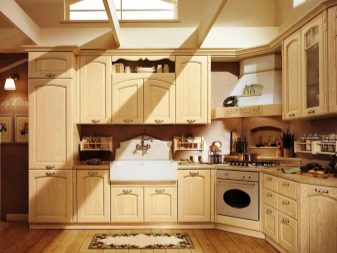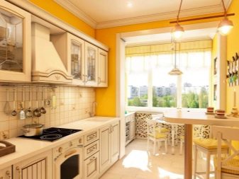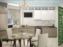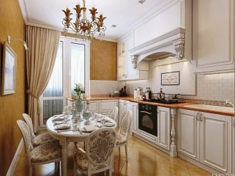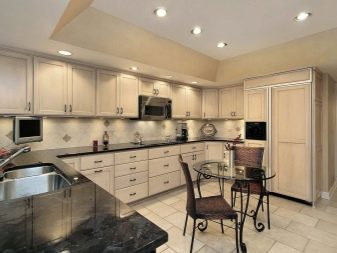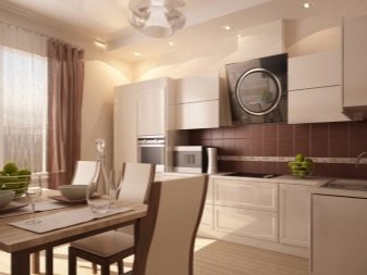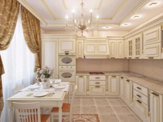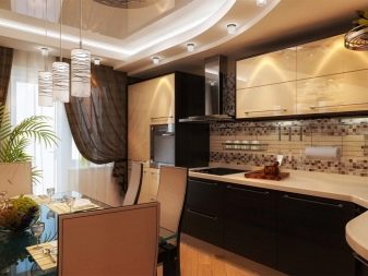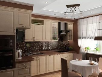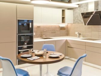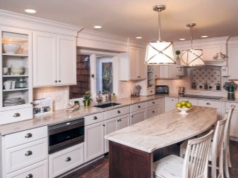 The placement of this or that type of headset depends on the meter of a particular room, the features of its layout, the location of windows, doorways and partitions, ledges or existing niches. As a rule, small kitchens are equipped with compact linear type headsets. This is a rational way to allocate space for a dining group. Corner kitchens - used in rooms with a large footage.