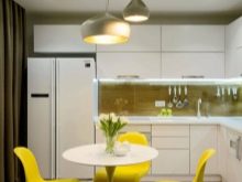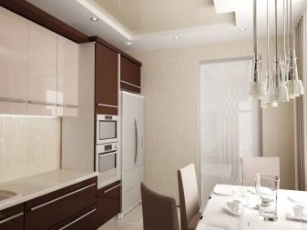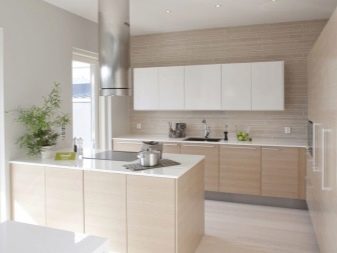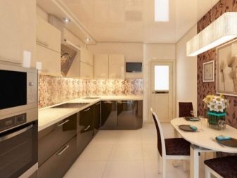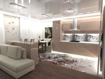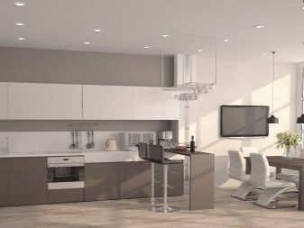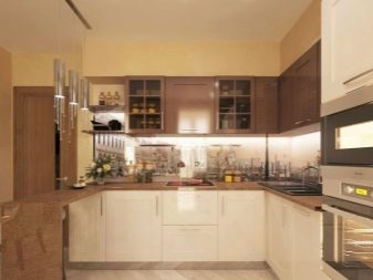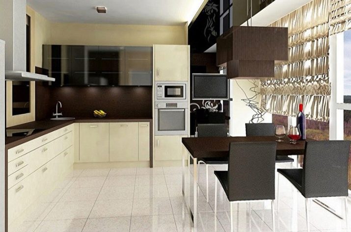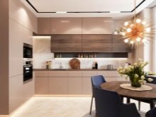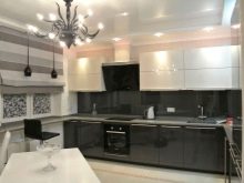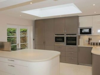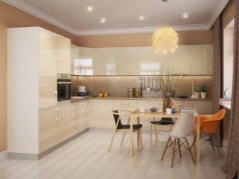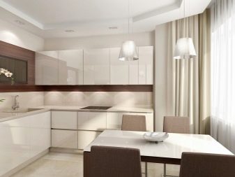 Here, a combination of a matte texture with gloss is allowed, while the facades of the cabinets should be matte, it is preferable to leave the gloss on the apron or the ceiling.