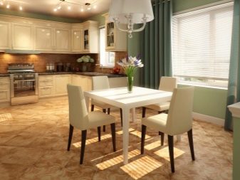 As for temperature, shape, material and appearance, everything is individually based on stylistics. For example, Provence needs cool beige tones, its combination with gray-blue, whitened pistachio is a priority. Furniture should be simple to leave room for interior accents. The color can be matte, akin to a dining group or chair covers or curtains.