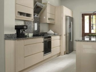 Need a gloss, the texture should be combined with metal, which today complements almost any interior. If you plan to install skins, the facades should not shine, otherwise the abundance of gloss will play against the aesthetic appeal of the interior composition.