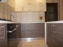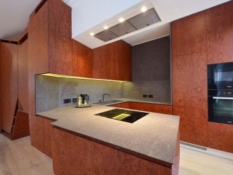 - peninsular - a bit like a U-shaped, but in this case an additional work area (peninsula) is installed on one side of the kitchen set, usually the distance between it and the opposite side is about 1 meter.