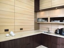 For the production of modern kitchens, plastic is often used. As a rule, it is combined with MDF - as a result, durable, beautiful and stylish designs are obtained. Modern panels are available in a variety of shades, so if you want, you can always choose the material painted under the tree. The advantages of plastic are obvious: the material is resistant to moisture, steam and minor mechanical damage, the surfaces are easy to clean, does not have the ability to absorb odors and grease, while retaining an aesthetic appearance for a long time.
