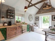 - Rustic - This is one of the most extravagant styles, which is ideal for people who prefer fashionable and non-trivial ideas in decor. Creating such an interior in the kitchen is impossible without the use of wood surfaces or their imitation, it is desirable that this was a texture of unprocessed rough wood, reminiscent of a village of the last century.
