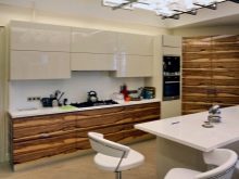 Unfortunately, wood is by no means a cheap material, so today we will talk about the design of kitchens under a tree.