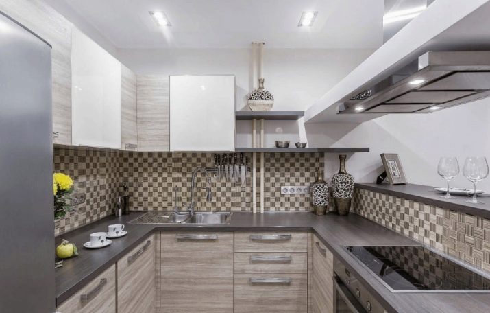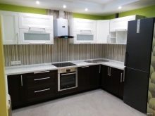 - L or L-shaped layout - angular options involve the placement of kitchen modules along two perpendicularly located adjacent walls; the dining area in this case is placed in the opposite corner, thereby freeing up the central area;