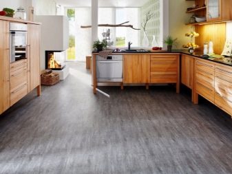 When decorating a kitchen under a tree, floors, walls and ceilings are often decorated. Tiles are usually used for flooring - this is a practical material that has such undoubted advantages as hygrostability, ease of cleaning, durability and resistance to wear. To finish the floor in the kitchen, tiles are usually used, the pattern of which completely repeats the relief and pattern of wood, which after laying creates the illusion of a real wooden floor or parquet.
