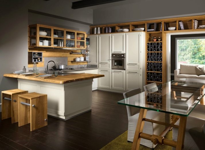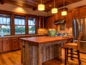 Proper use of the texture of natural wood will allow you to implement any design decisions on the interior of the kitchen.