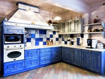- Provence. This style is preferred by lovers of refined and sophisticated trends. Traditionally, kitchen materials are used in light shades, and furniture accessories are painted in any calm colors (lavender, mint, turquoise or blue). Furniture sets must necessarily be complemented by decorative elements, curtains, flower vases, paintings and other details that stand out from the general color scheme look relevant.