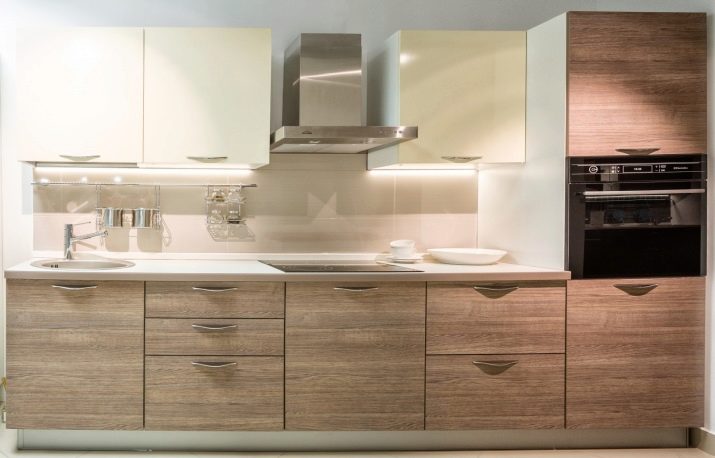 MDF headsets are very popular - this is a natural material made from wood chips. In the process of production of such blocks, toxic substances are not used, which means that when the surfaces are heated during cooking, hazardous components will not be released into the air, leading to a deterioration of the human condition. MDF looks stylish and has a texture that imitates wood as much as possible. This material is characterized by durability and can serve its owners for many years, while maintaining its original gloss and impeccable appearance.