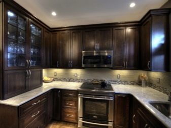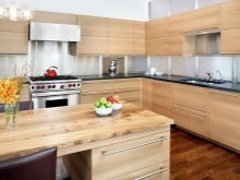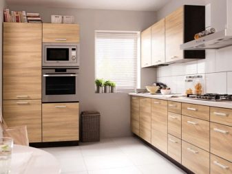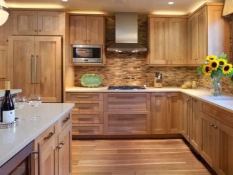 But in the vast majority of cases, wood-like kitchens are still ordered from professionals. The preferred choice is cherry, oak and beech veneer. A little cheaper are kitchen sets with pine veneer. Despite the savings, she looks very good.