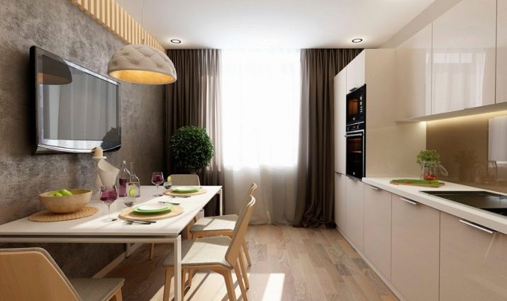 Direct kitchen is a good solution for a studio apartment. Often, linear headsets are installed when the kitchen is combined with the living room.