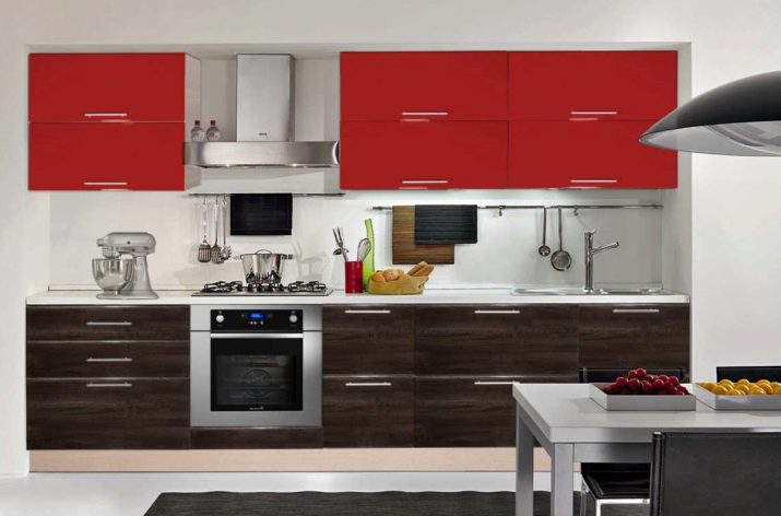 Interesting look vibrant kitchens in saturated colors (orange, yellow, red, green, blue, light green, pink models are popular). Such a set can breathe life into the interior, fill it with rich colors.