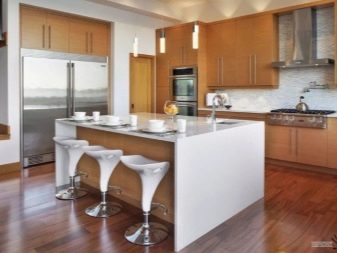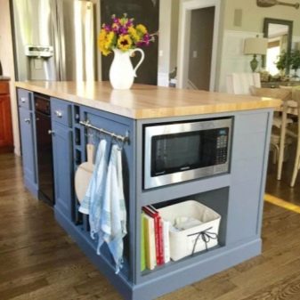 Often, these islands take up a lot of extra space, complicate the passage along the aisle and are not suitable for accommodating household appliances. Consider these features before buying.