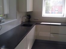 So that there are no ugly stains on the black countertop, after washing it will need to be thoroughly wiped with a special sponge. Care must be taken not to place sharp kitchen utensils on such work surfaces that may leave scratches.