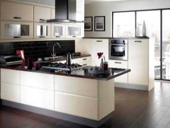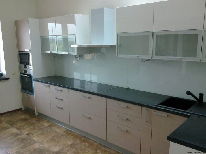 - These are not the most practical components of a kitchen headset. The black coating, especially if it is matte, immediately displays absolutely everything that falls on it. In the kitchen, this is usually drops, crumbs, dust, spray. Because of this, the furniture will look unaesthetic. It will have to be constantly washed and put in order, which causes frustration for many housewives.