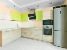 For such kitchen sets, a rather minimalistic appearance with respect to forms is characteristic, but here the color of the set can be either white or, for example, acid-lemon.