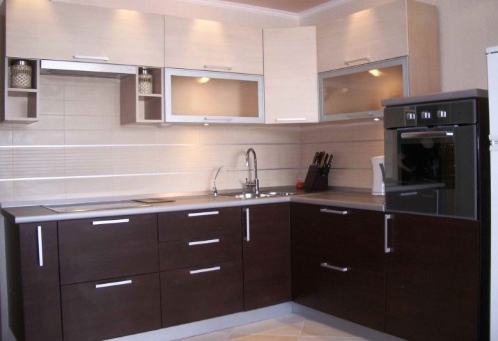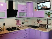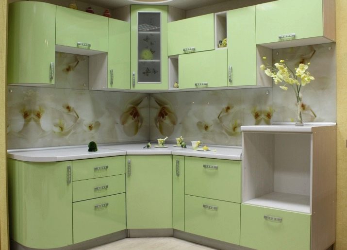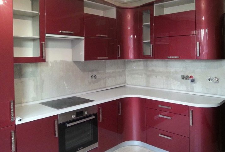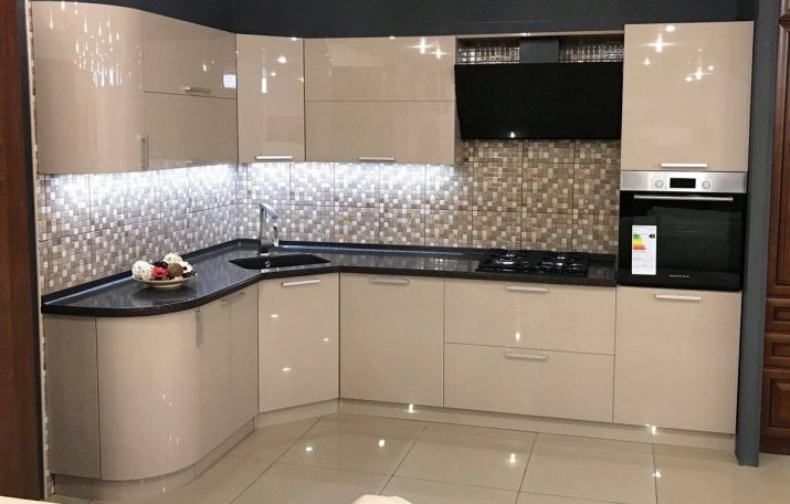 Corner kitchens made of plastic are suitable for kitchens of any size, but most often they are used for small rooms. The spacious kitchen can be complemented by an island or a bar. As for the corner of the kitchen, it can have a standard look, and it can be beveled.