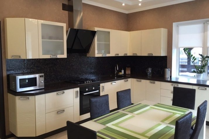 Especially original beige kitchen set looks in combination with dark walls or an apron.