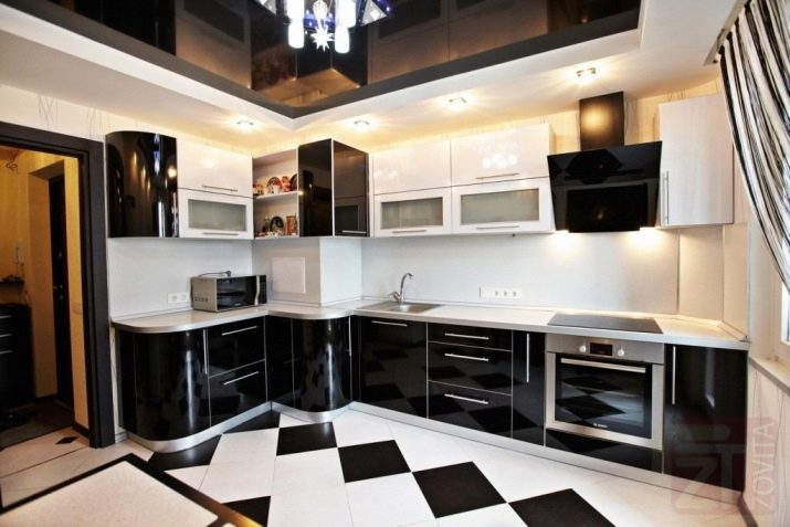 - Timeless classic is black and white color scheme. For such a kitchen, you can choose a bright apron from tiles or use murals.