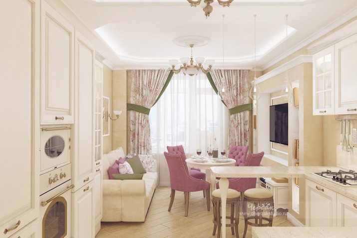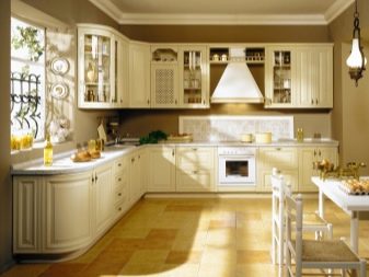 Corner kitchens in such colors are able to visually make the room lighter and more spacious. In rooms of small quadrature, it is better not to turn to dark palettes, since they will only reduce the already modest space, make it cramped, "crushing".
