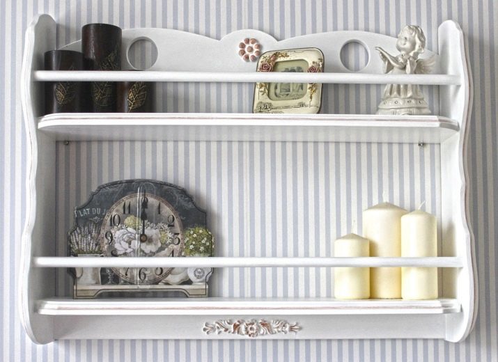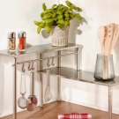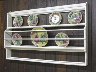 Miniature specimens are hung on rails, using for trifles, and larger and stronger models are mounted on the wall or mounted on tables at the sink, used as drying for dishes. Modern techno-styles adorn any wall with chrome shelves. For retro directions produce products stylized as copper, bronze or brass.