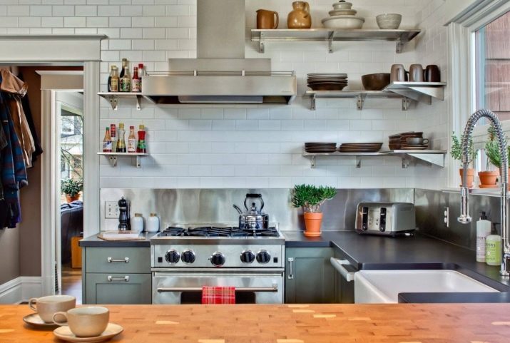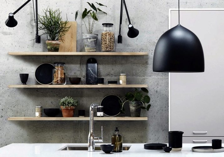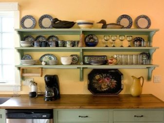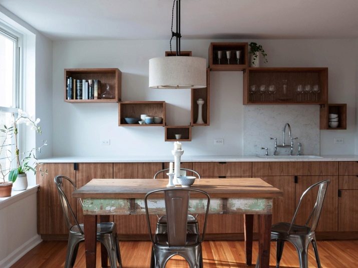 The kitchen is filled with many necessary items, and no matter how many additional storage places are created, they will not be superfluous. For this reason, it seems to many that shelves in the kitchen can only have virtues.