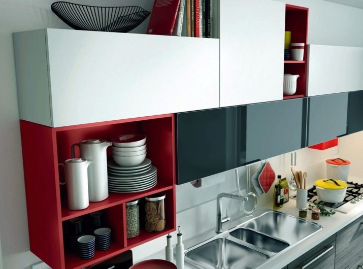 Sometimes products are equipped with hinged, sliding or lifting doors. Such furniture allows you to hide from the public view unsightly, but necessary kitchen utensils.