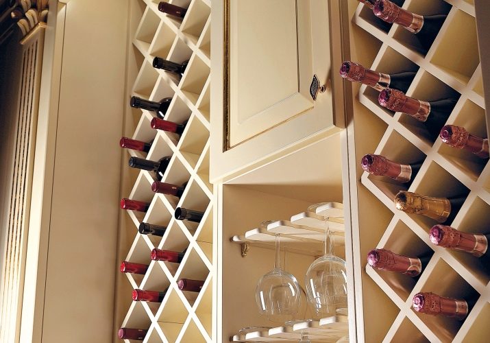 - Vertical wine shelves take up little space in the kitchen, but collect the entire home collection of wine.