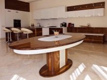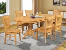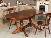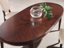 When choosing an oval table for the kitchen, it is important that it looks good in the interior, is easy to use and consistent with the main design. Folding tables are more suitable for small-sized rooms or square areas, but for a rectangular spacious room you can already choose a classic oval table.