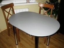 However, oval tables have a number of disadvantages. They can hardly be called miniature, so it is impossible to place such a shape in a small-sized kitchen. Yet again the oval table cannot be placed in a corner or brought close to the wall, which does not make it possible to release free space.