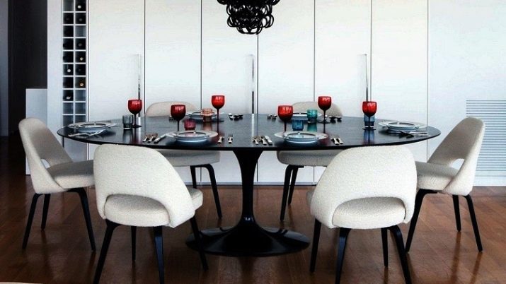 The oval table is a fairly frequent guest in the living room or kitchen. In addition to the aesthetic appearance, it is characterized by a larger capacity and the ability to create a comfortable atmosphere for diners.