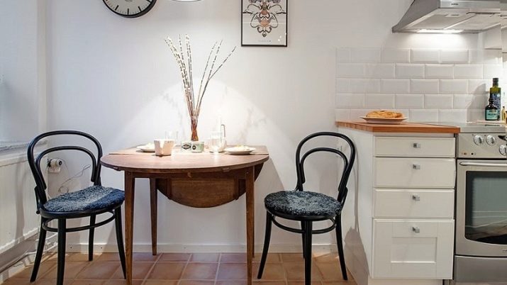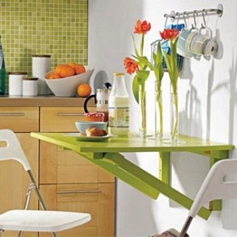 If you have a small kitchen, you just need to learn how to rationally use the space. Since a table in the kitchen is a must, then in order to save a little space, but still be able to seat the whole family, it is worth buying a wall table.