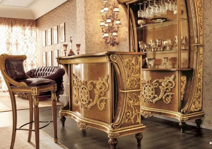 - Bar. These types of tables, in addition to their main responsibilities, also perform a zoning function. Particular refinement and uniqueness is added to the interior by dividing furniture decorated with art carvings.