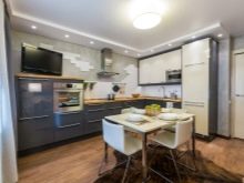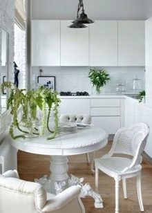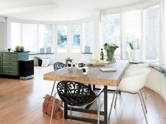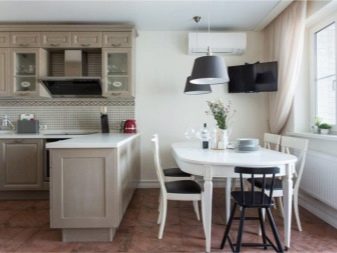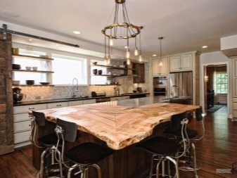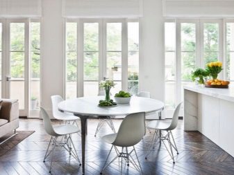 Often an oval-shaped table appears in the kitchen. There will be more space for it than for a round one, but in modern spacious apartments there are conditions for this. If the countertop “stands” on one leg, then an oval object will fit in a small kitchen.