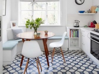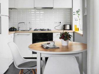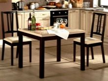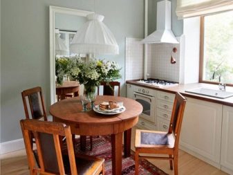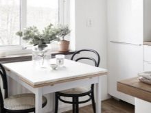A square table is most preferred when it comes to small spaces. In this case, small models are acquired, because overall tables will look awkward in a small kitchen.