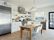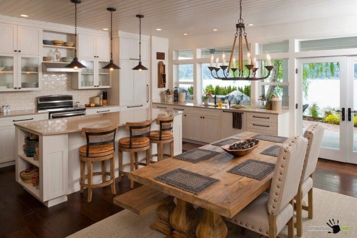 Rough wooden models for the kitchen came into fashion either completely without painting and polishing, or painted, as if carelessly, with scuffs. The fashion for such tables is partly due to the fact that they serve as a photophone for instagrams. Today, many maintain accounts on this network as commercial sites, and photo requirements are growing. So the textured wooden table serves as a wonderful background. Some rudeness is regarded as naturalness, as a love for the natural, not specially decorated, living its own life.