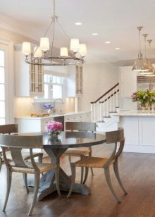 The round shape of the table is psychologically considered the most correct for the family: It attracts household and guests, unites, helps to feel comfortable during the meal. Finally, the round table is considered a kind of symbol of warmth, comfort in the apartment. It is convenient to arrange trays and plates with dishes on the surface, at this table fits more people. The most popular type of furniture is wood.