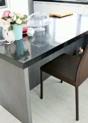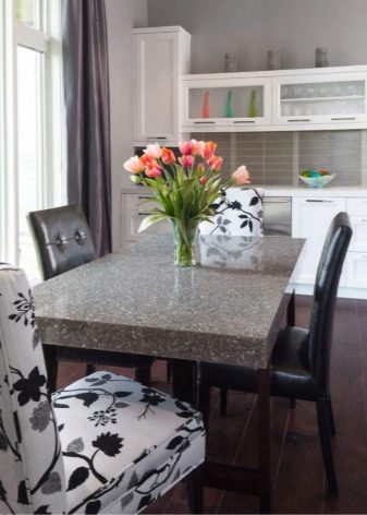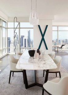 Dining tables with granite and marble countertops are also relevant, although they will not be in harmony with every kitchen. It seems that it can be stronger than these products, but they are not the most durable. They are quite easily scratched, chipped, destroyed by acid and spilled drinks. (fault, for example). But nevertheless, stone tables will be stronger than wooden ones, but it’s hard to say what looks more interesting, more beautiful.