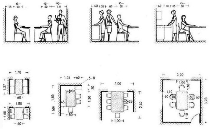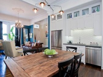 Attention! The dining kitchen table is usually chosen according to ergonomic requirements. This means that the distance from the wall to it should be at least 80 cm, so that a person could easily sit down, stand up, move the chair back.