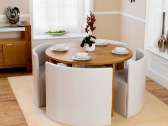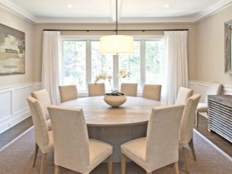 The choice of furniture dictates the space, namely its shape and dimensions. If you design it in a classic, then the rounded table will be complementary to it. Such furniture, as a rule, is placed either in the central part (against the wall in the corner or along the free wall).