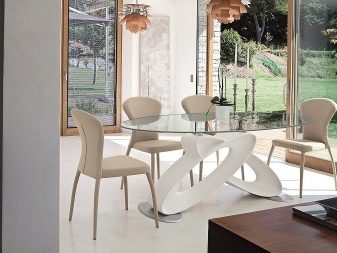 But the undoubted minus of glass furniture is soiled: spots and fingerprints remain on them constantly, problematically wiped off the surface. If the table is fully or partially matte, with a decorative coating, it will not be so noticeable. You can use stylish durable napkins that will reduce the degree of soiling of glass models.