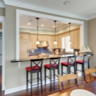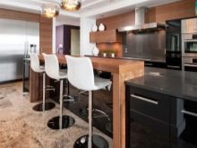 - Bar stools can be harmoniously placed even on classic kitchen, the main thing is to choose the right material and color. For such options, you can consider the semi-chairs.