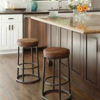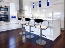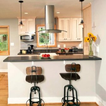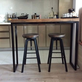 Without chairs, the rack in the room will not be able to fully perform its functions. Unfortunately, ordinary stools or chairs with it can not be used due to its size and height. The range of kitchen furniture for use in conjunction with the counter is quite extensive.